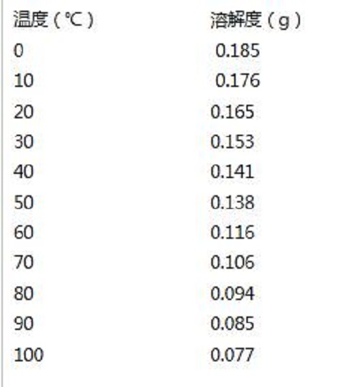 ,疏松的白色粉末。俗稱熟石灰、消石灰,它在水中的溶解度很小,以下是